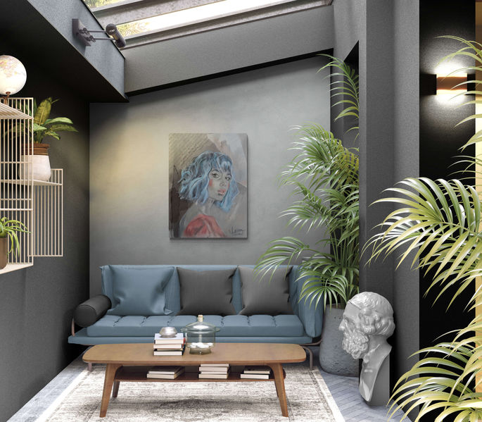 Libre est une œuvre numérique expressive où la douceur du bleu s’oppose à la densité du silence.